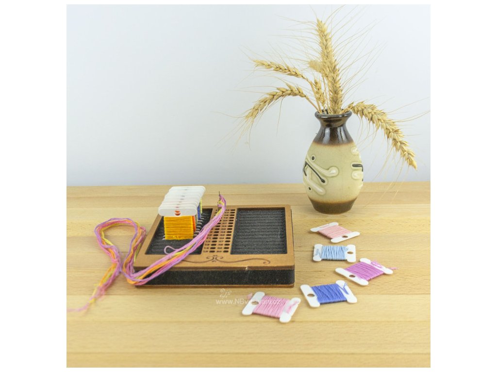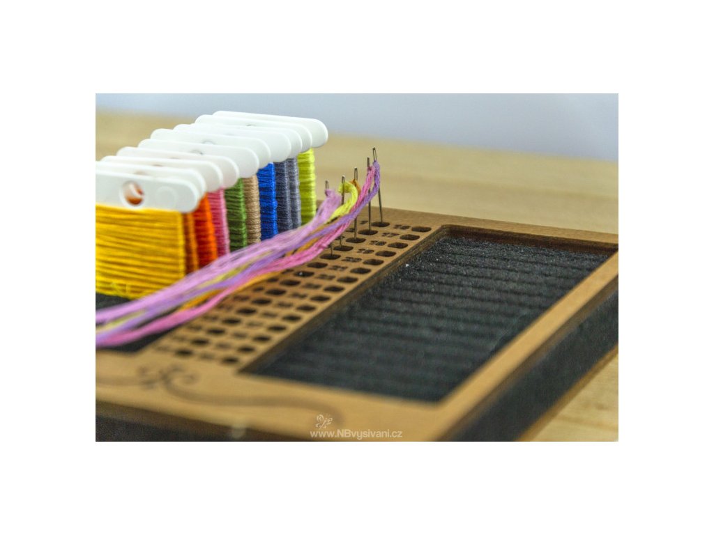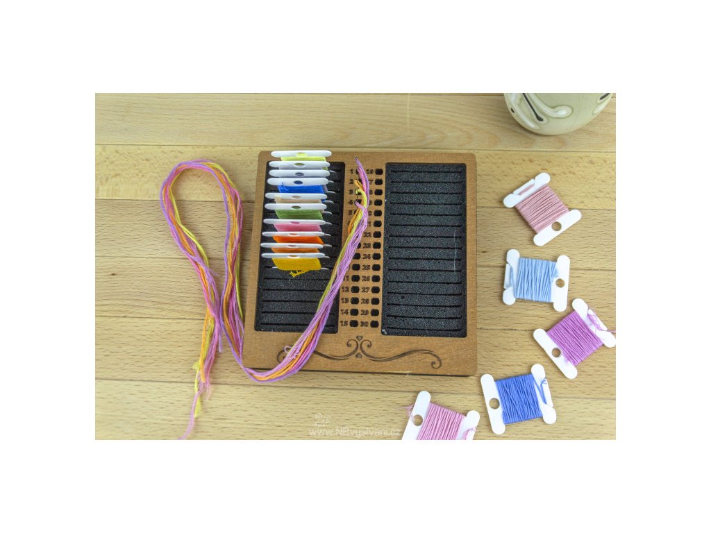 Praktický dřevěný organizér s pěnovou vložkou pro 30ks namotávátek a 30 návleků firmy Embroidery Craft. Namotávátka nejsou součástí!