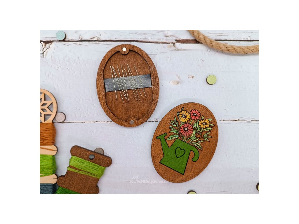 WD-KF056/121P Magnetické dřevěné pouzdro na jehly - konev s květinami