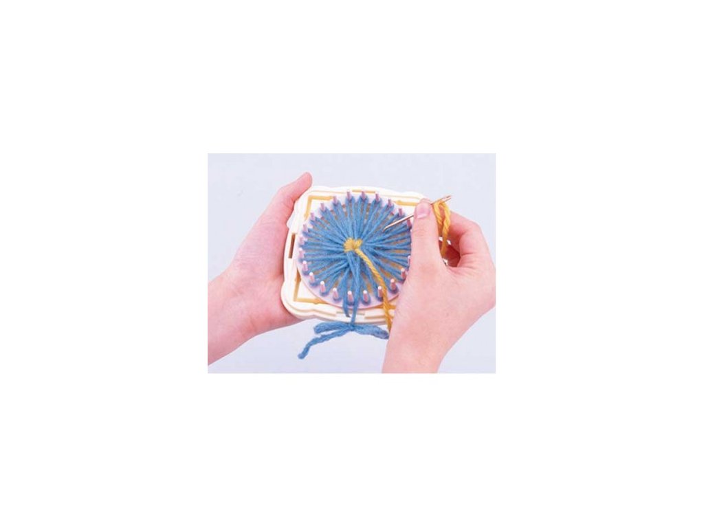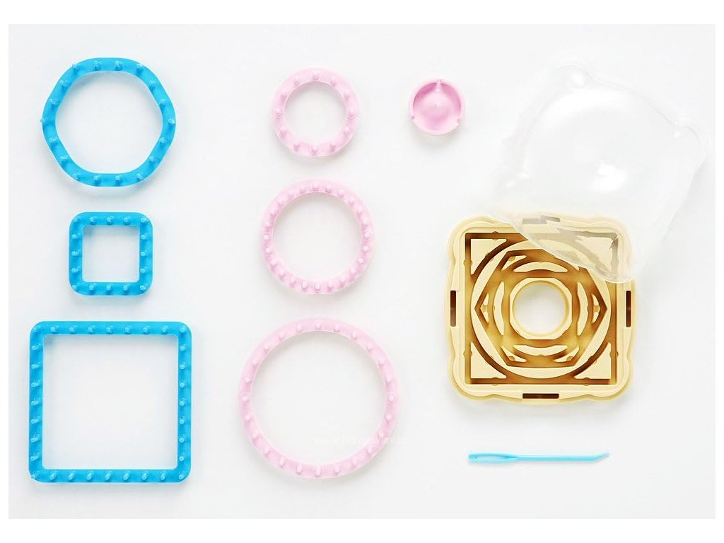 Kreativní pomůcka pro výrobu textilních květinových motivů různých tvarů a velikostí. Pomocí této pomůcky můžete vytvářet květiny z příze, stuh, látek, raffie, šňůr nebo jiných materiálů, což je ideální pro dekorace, doplňky nebo šperky.