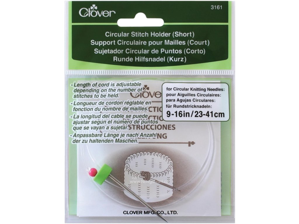Krátký kruhový držák ok (Circular Stitch Holder), určený pro uchování rozdělaných ok při pletení ve vzorcích, rukávech, výstřizích a dalších projektů, kde je potřeba nějakou část rozpracované části odložit. Pomocí posuvné kuličky lze „utáhnout“ lanko, aby oka nebyla volná.