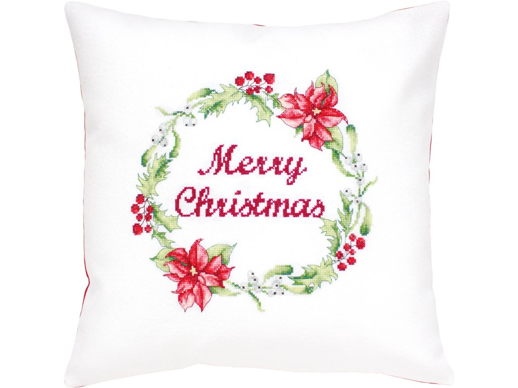 Balení obsahuje: bavlněné tříděné příze Anchor (22 barev) Britney Lugana 28ct bílá se třpytem červené plátno na zadní část červený zip předloha jehla návod Rozměr: 40x40cm