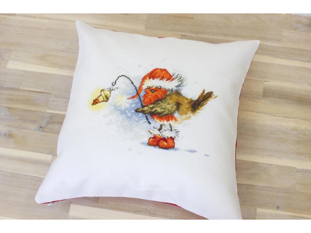 Balení obsahuje: bavlněné tříděné příze Anchor (34 barev) Britney Lugana 28ct bílá se třpytem červené plátno na zadní část bílý zip předloha jehla návod Rozměr: 40x40cm
