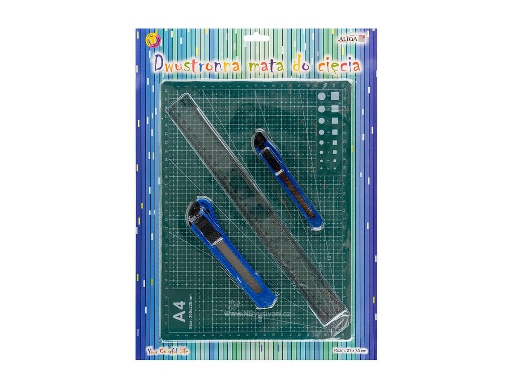 Sada obsahuje: 1x pravítko 30cm2x řezací vysunovací nůž 1x podložka 21x30cm