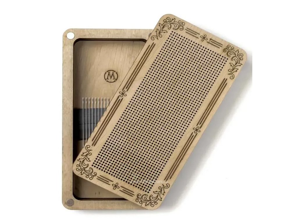 dřevěný krabička s magnetickým páskem uvnitř a víkem k vyšití vlastního motivu