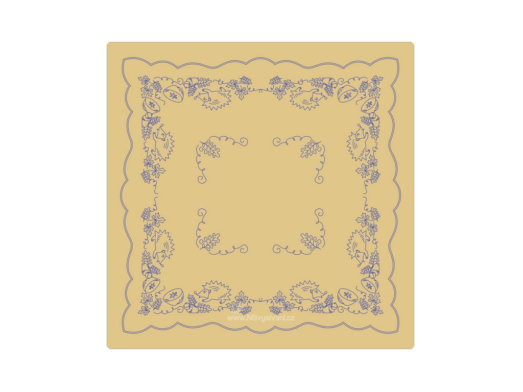 Béžový ubrus na tesilenu a předtištěným motivem. Rozměr: 90x90cm