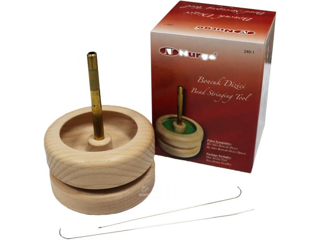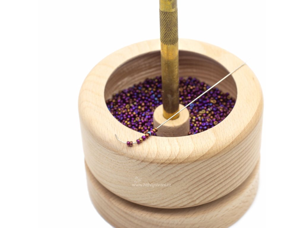 Praktický pomocník při navlékaní malých korálků - perliček. Materiál bukové dřevo, kov a 2 navlékací drátky.