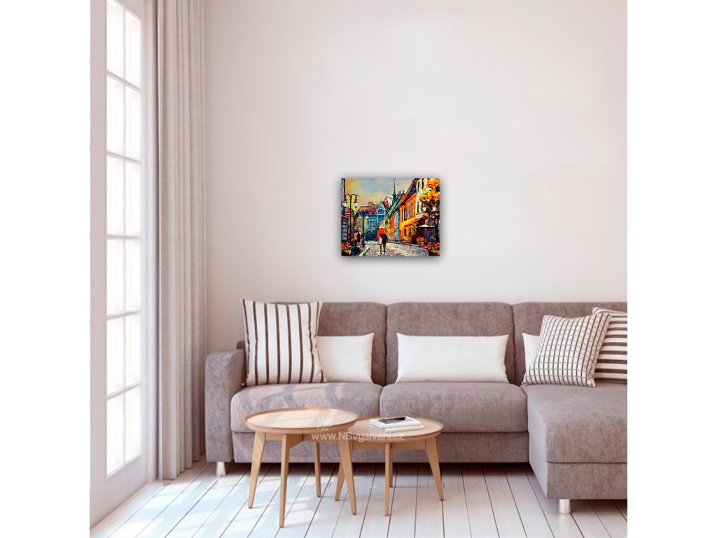předtištěný motiv na plátně nataženém na dřevěném rámu včetně háčku k jeho finálnímu zavěšení na zeď