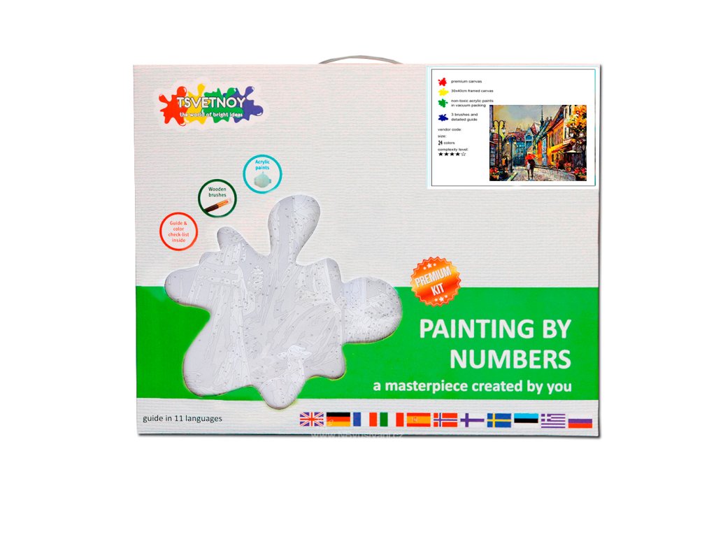 Motiv firmy Tsvetnoy pro malování vlastního obrázku podle čísel. Obrázek je rozdělen na jednotlivá očíslovaná políčka, která jen vybarvujete dle předlohy.