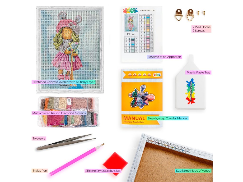 Kvalitní sada firmy Tsvetnoy je určena pro tvorbu mozaikové malby 3D pomocí malých kamínků “diamantů”.