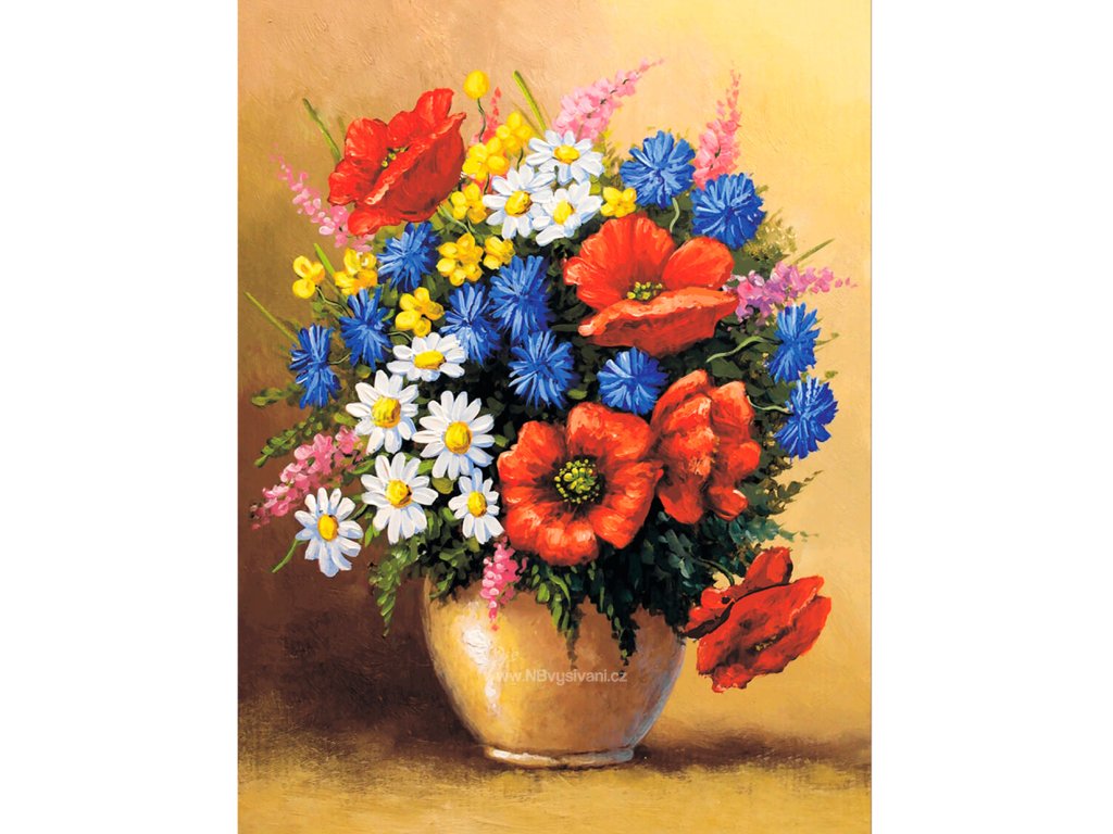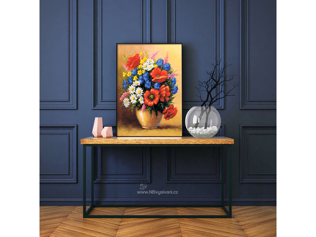 plátno s předtištěným motivem pokryté lepící vrstvou nataženou na dřevěném rámu včetně háčku k jeho finálnímu zavěšení na zeď