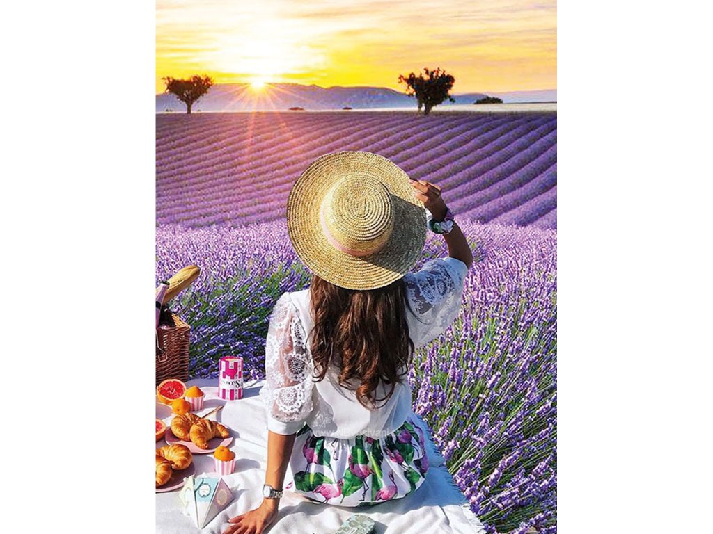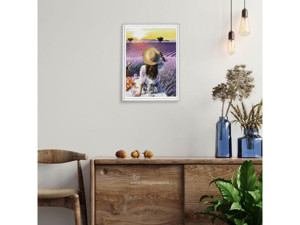 plátno s předtištěným motivem pokryté lepící vrstvou nataženou na dřevěném rámu včetně háčku k jeho finálnímu zavěšení na zeď