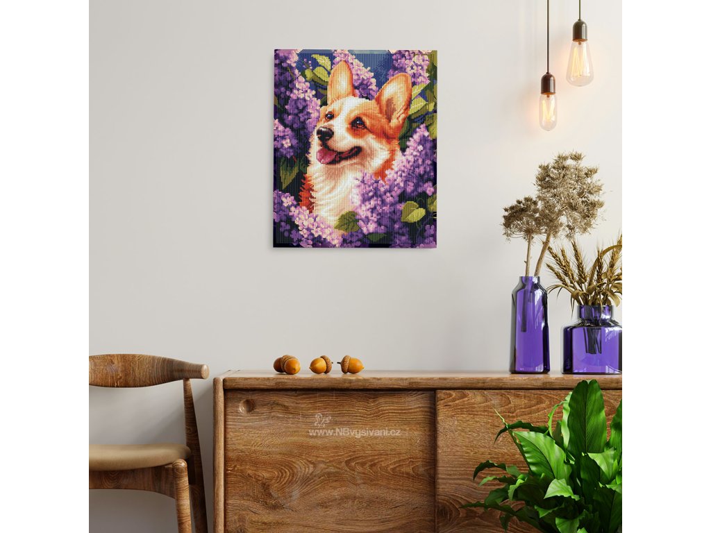 plátno s předtištěným motivem pokryté lepící vrstvou nataženou na dřevěném rámu včetně háčku k jeho finálnímu zavěšení na zeď