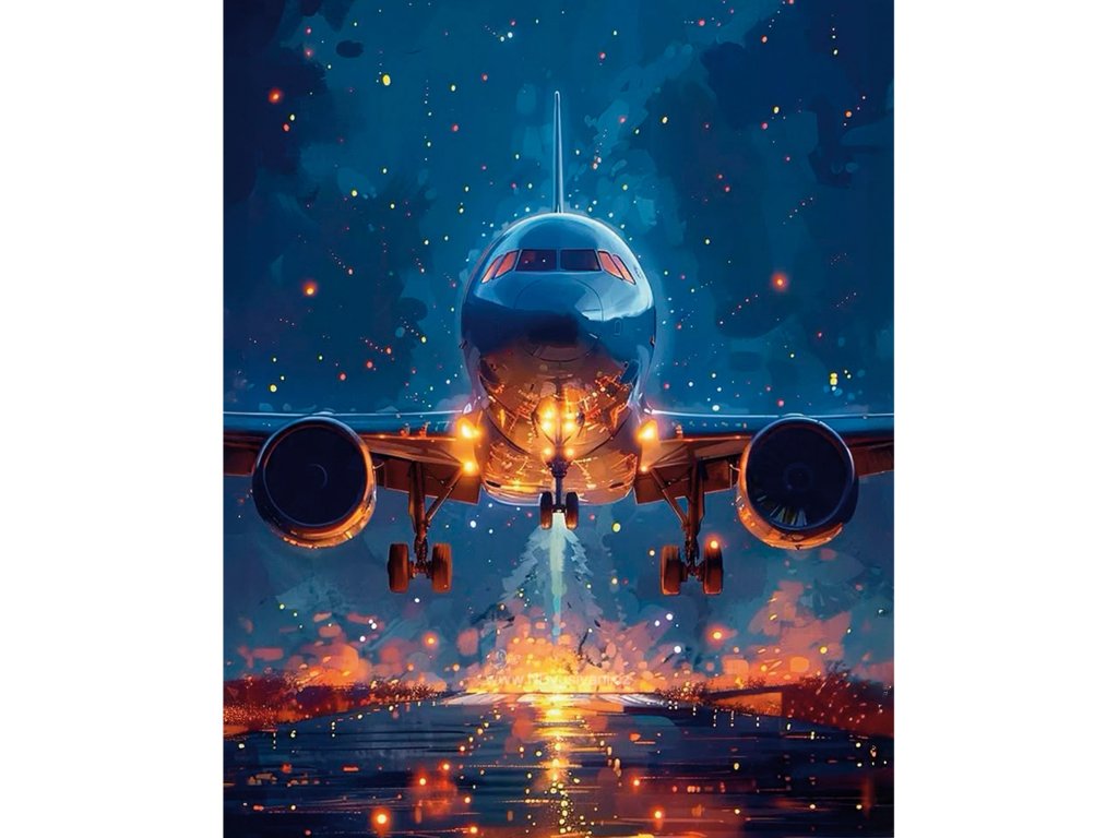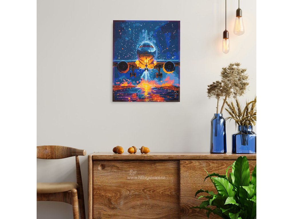 plátno s předtištěným motivem pokryté lepící vrstvou nataženou na dřevěném rámu včetně háčku k jeho finálnímu zavěšení na zeď