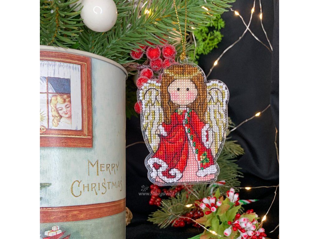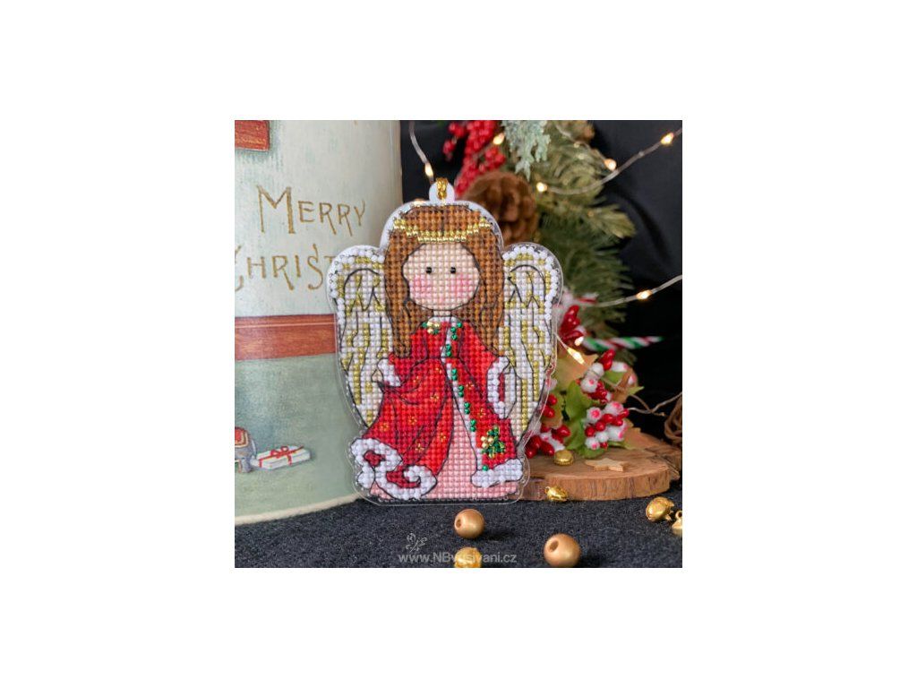 UNI-1017 Vánoční andílek v červeném (vyšívaný plastový podklad)