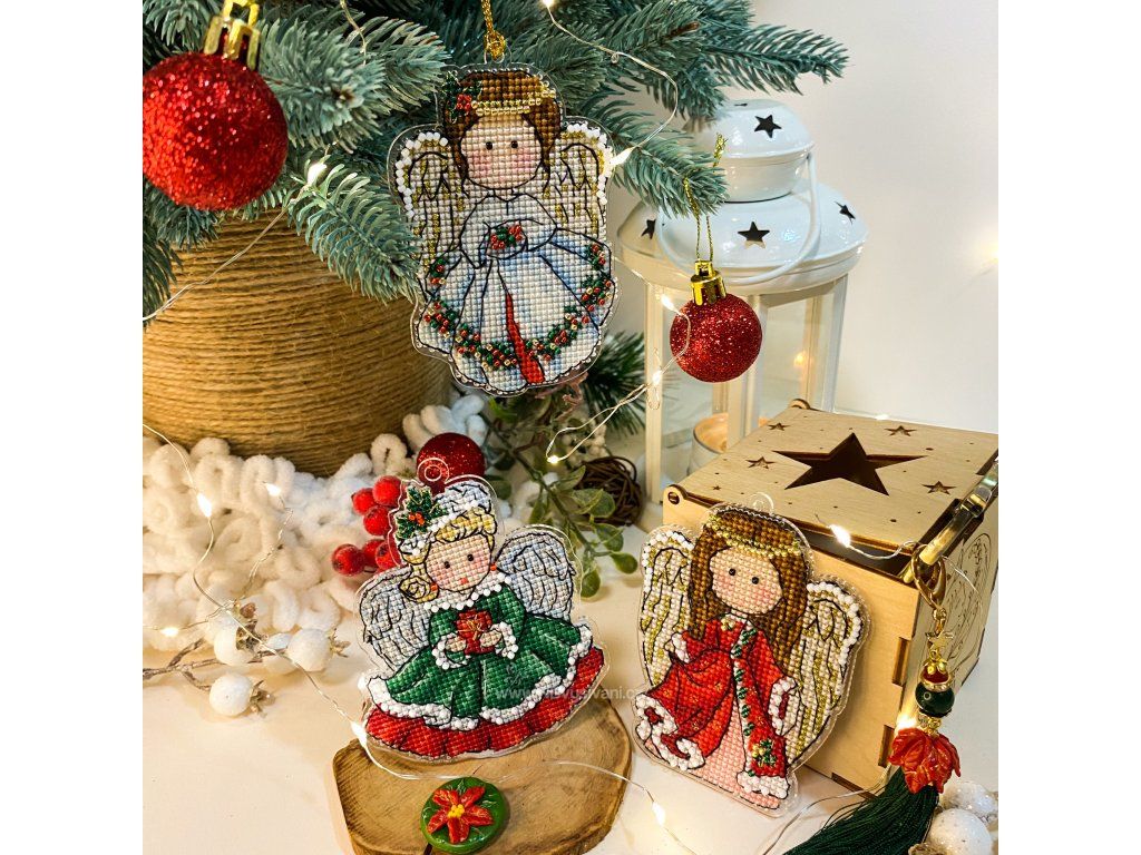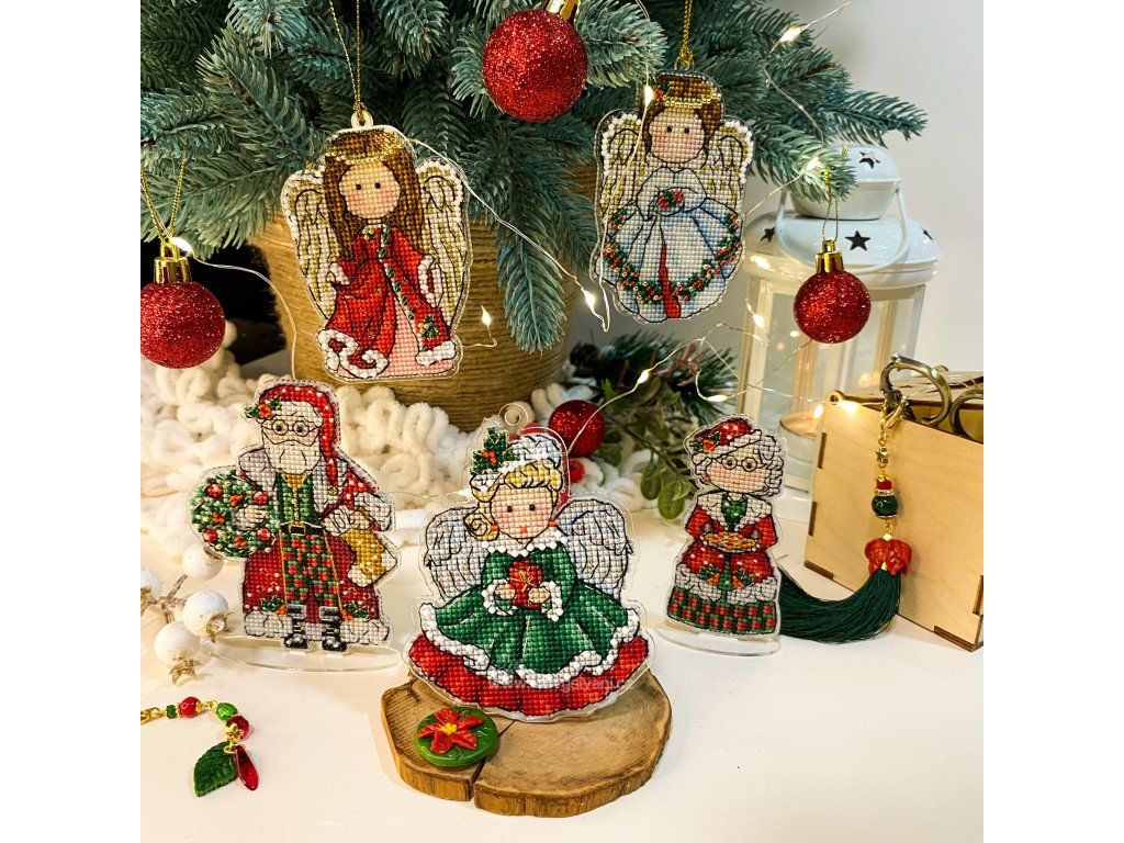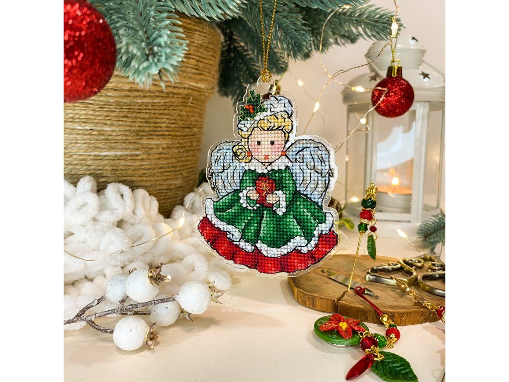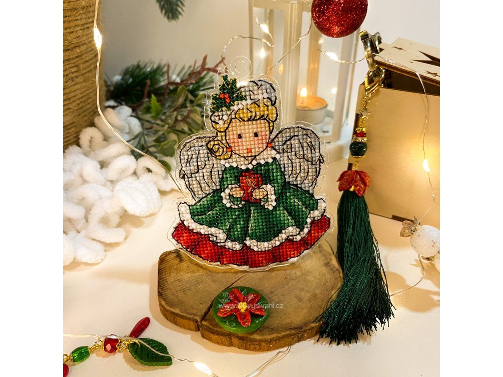 UNI-1052 Vánoční andílek v zeleném (vyšívaný plastový podklad)