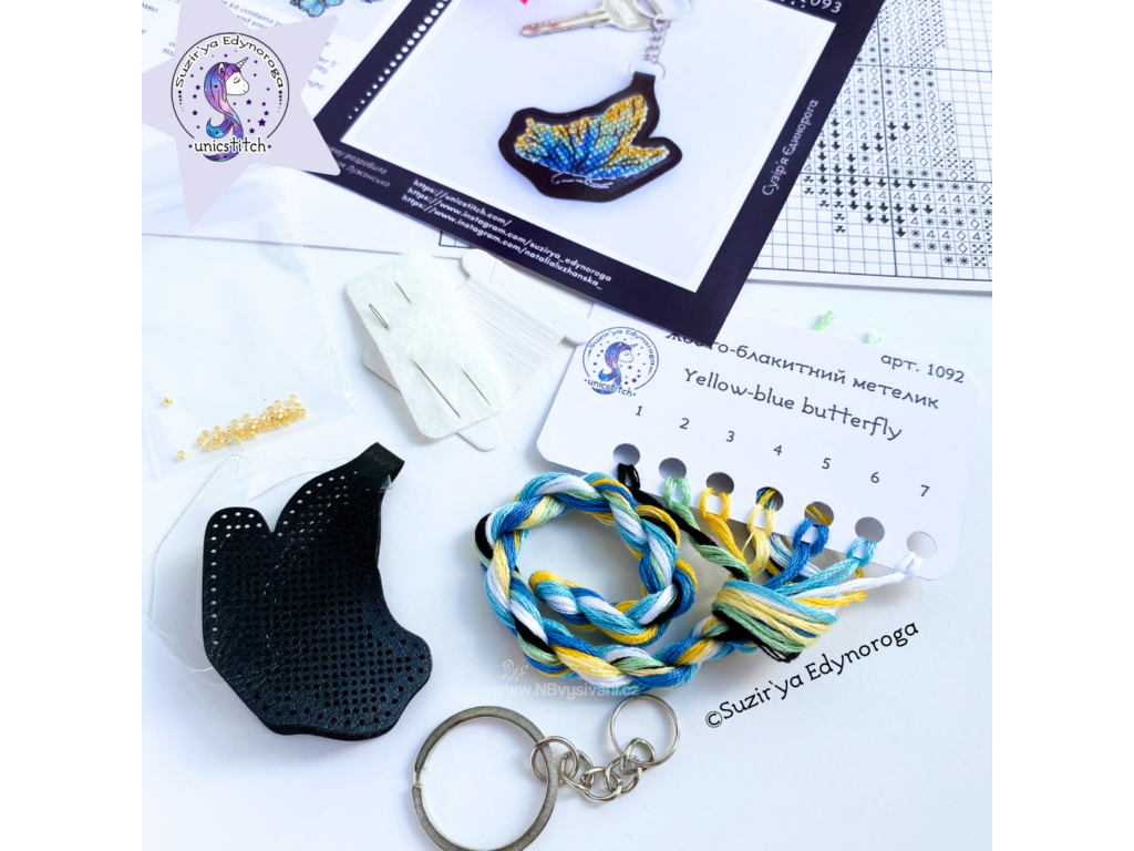 UNI-1093 Žlutomodrý motýl (vyšívaná koženka)