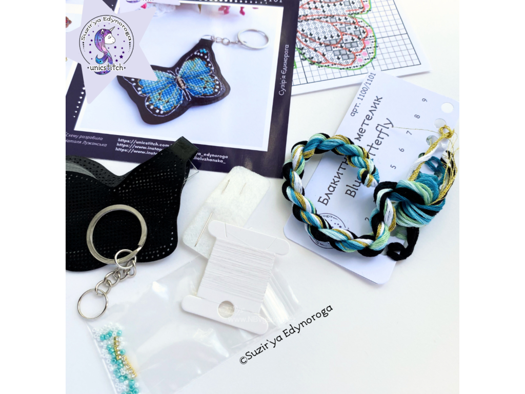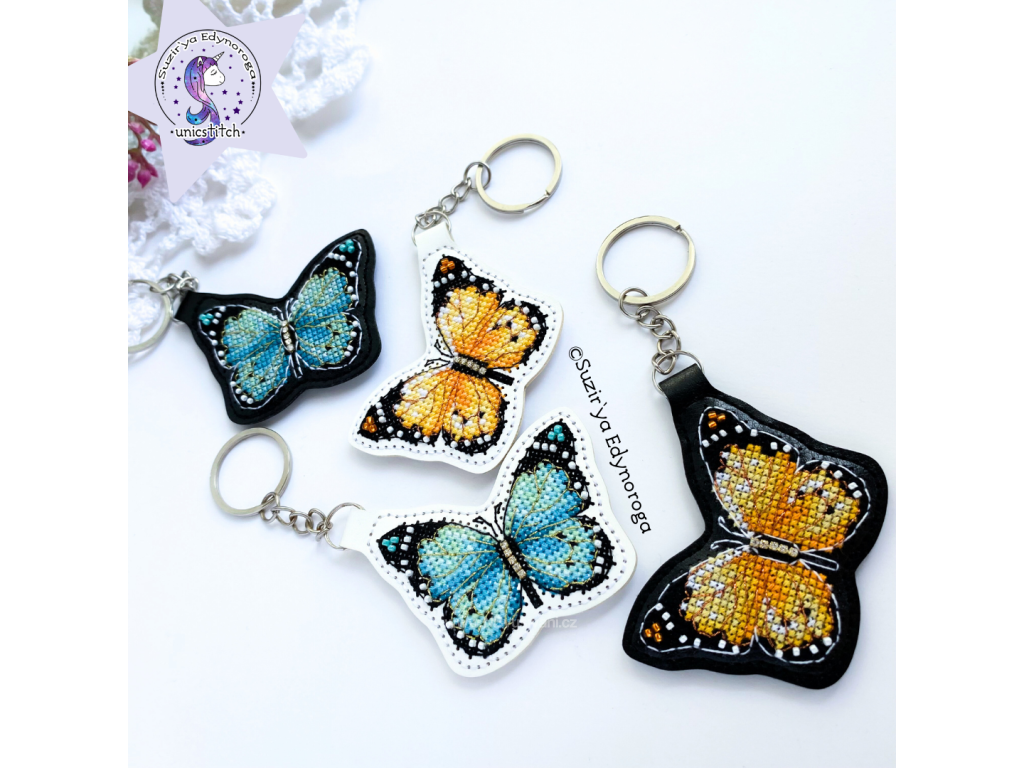 UNI-1101 Modrý motýl (vyšívaná koženka)