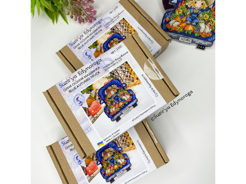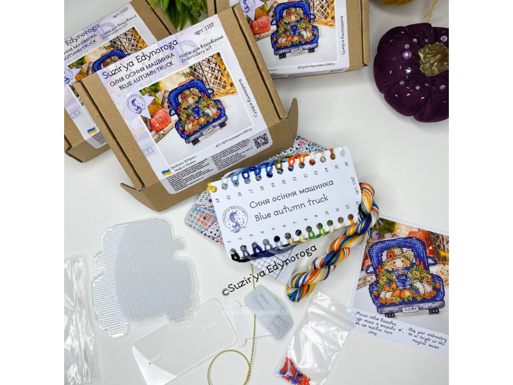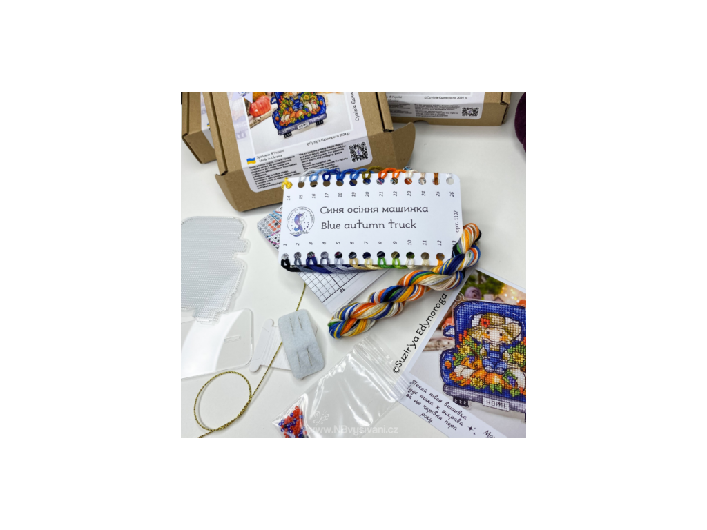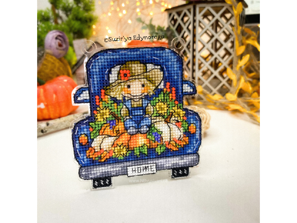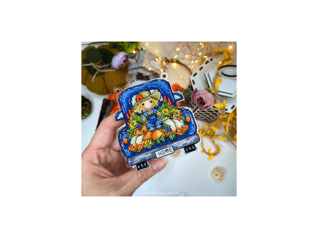 UNI-1107 Zahradník a auto s podzimní sklizní (vyšívaný plastový podklad)