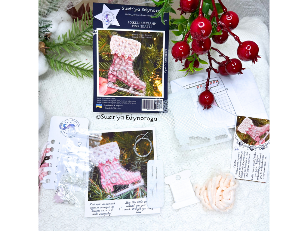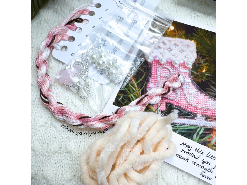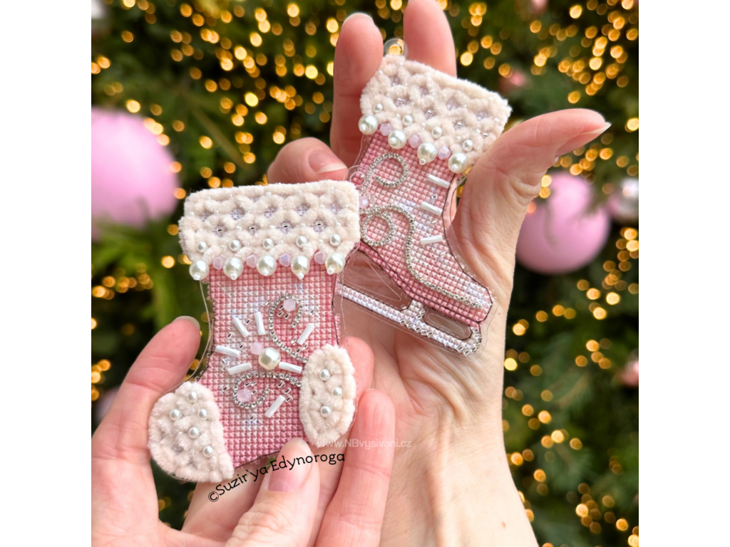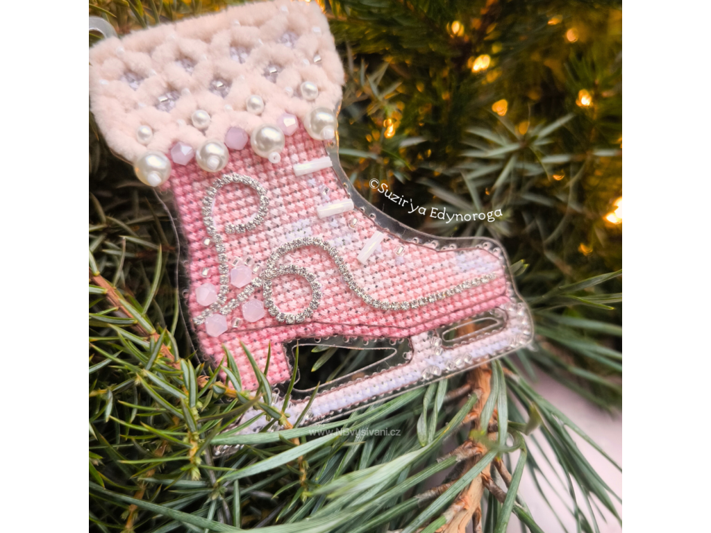 UNI-1129 Růžová brusle (vyšívaný plastový podklad)