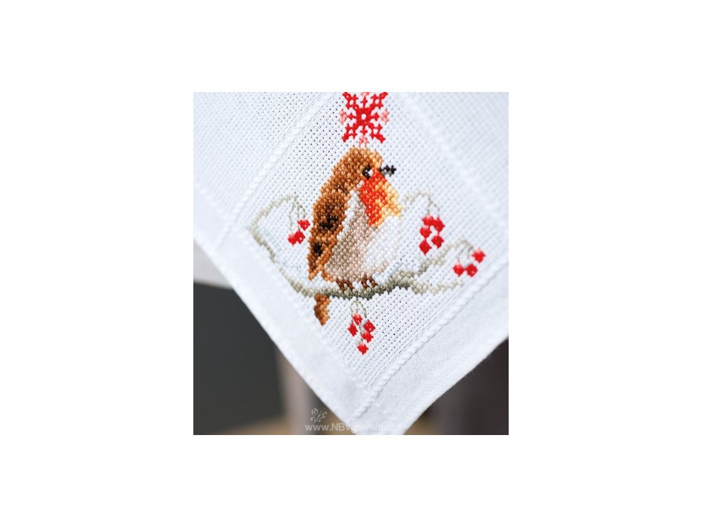 VE-PN0157099 Ubrus s červenkou a jeřabinami (80x80cm)